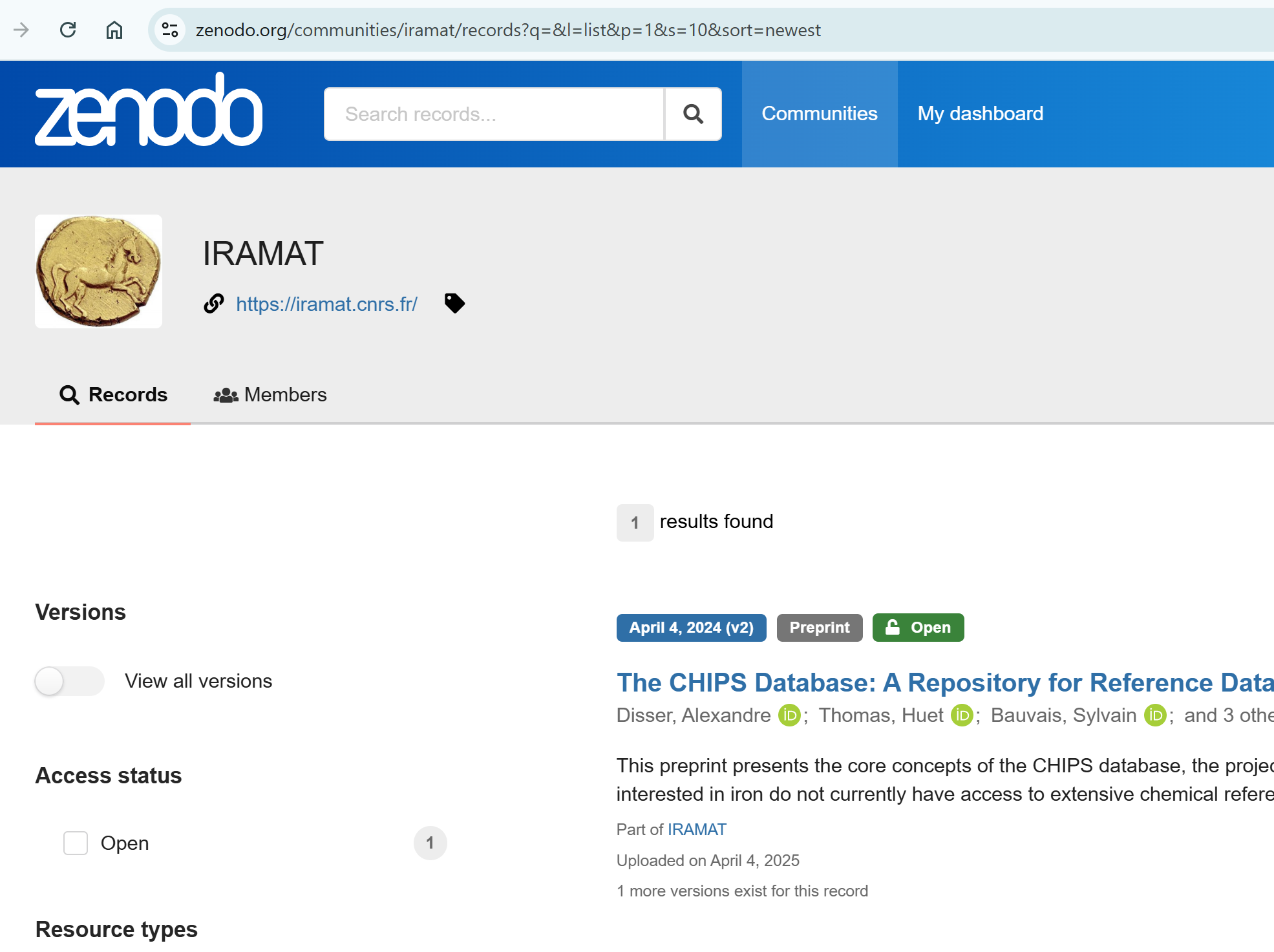 L’IRAMAT a une communauté Zenodo: https://zenodo.org/communities/iramat